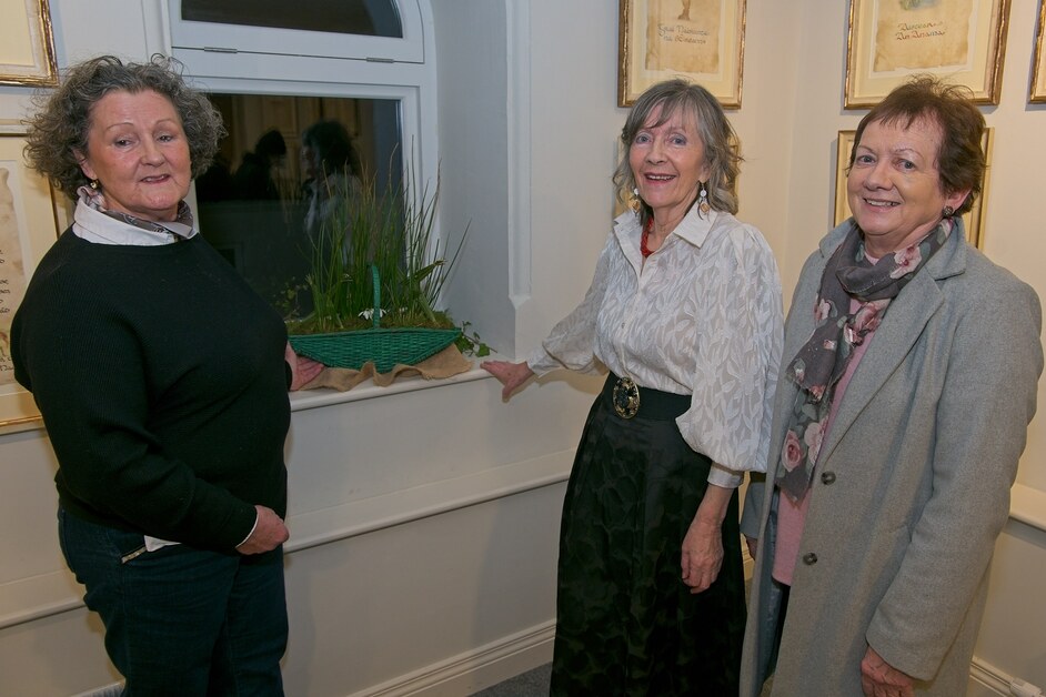 Pictured: Marie Heavey-Bartley who created the ‘Brigid’s Basket display with Artist/Calligrapher Josephine Hardiman, and Terry O’Brien at the launch.