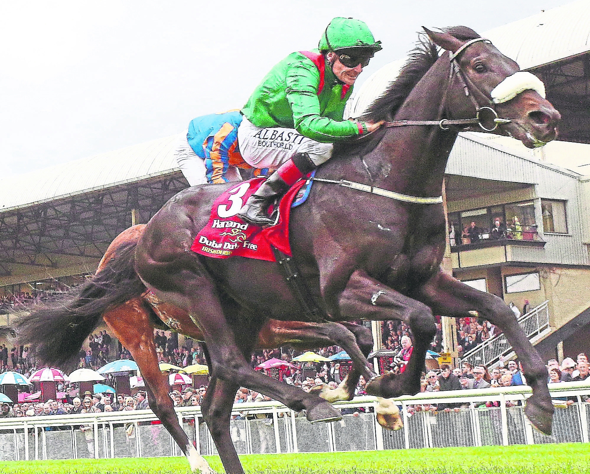 Harzand and Pat Smullen winning the Dubai Duty Free Irish Derby in 2016