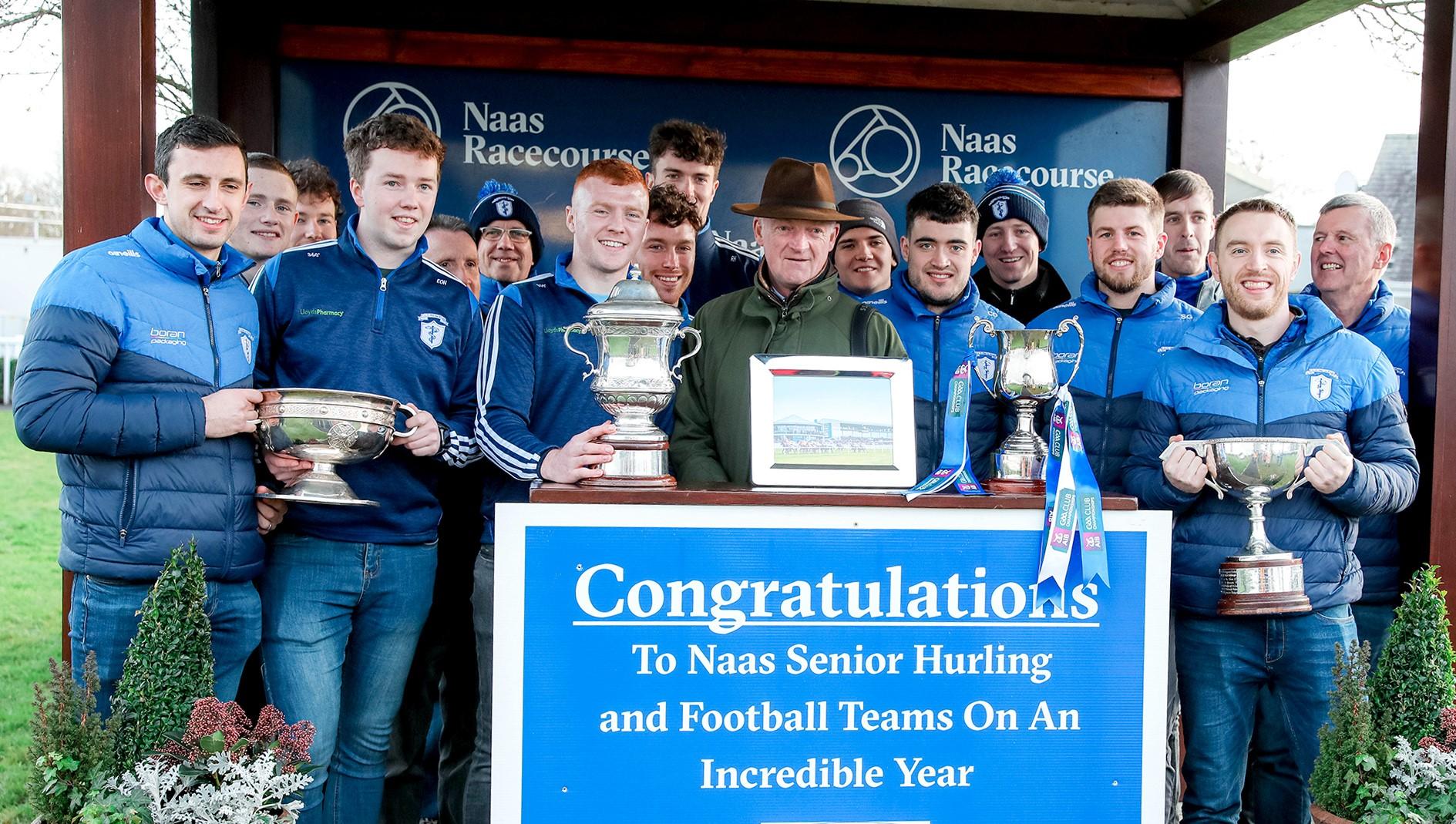 Trainer Willie Mullins with members of the all-conquering Naas GAA club.