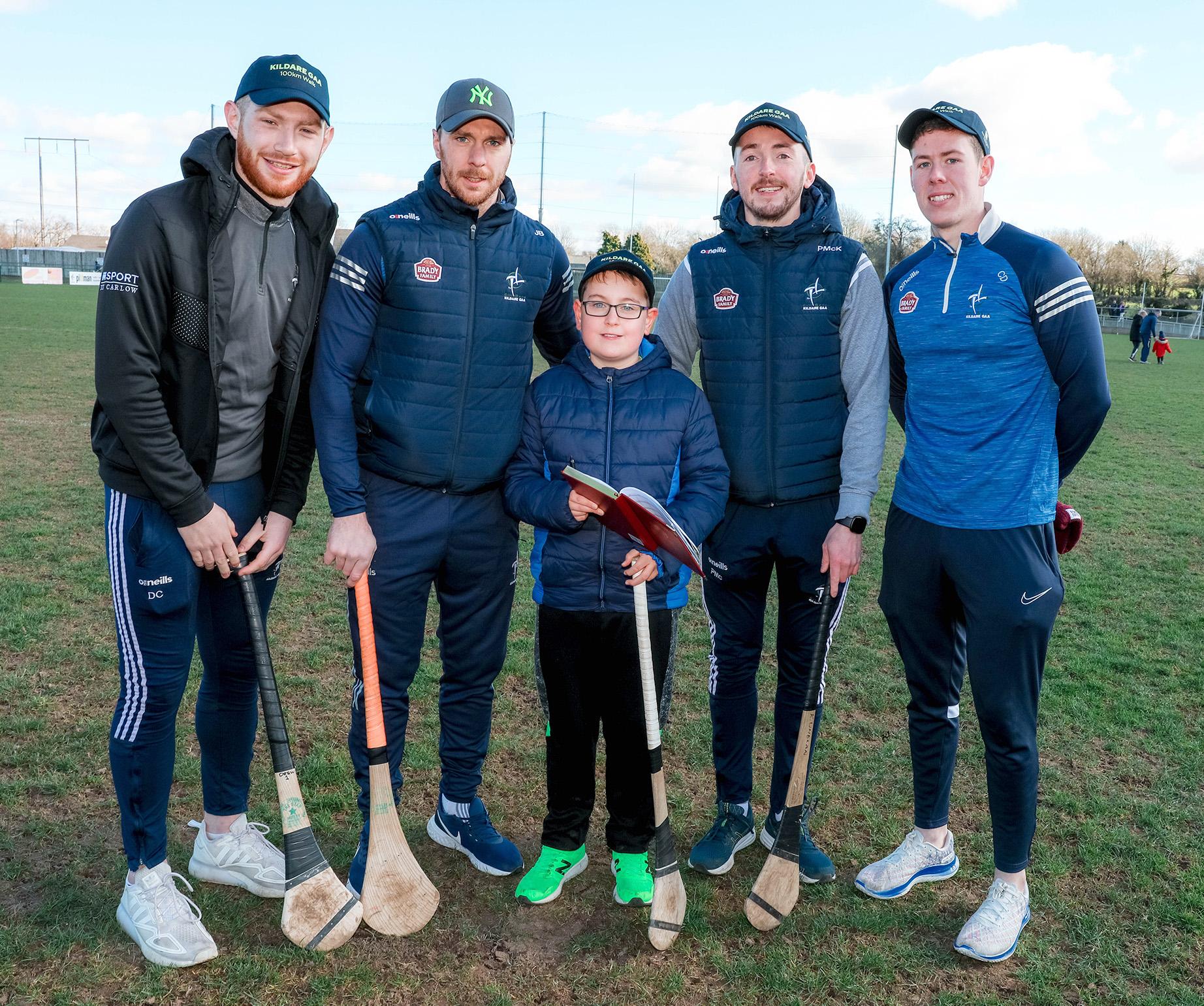 Drew Costello with Kildare Senior Hurlers Johnny Byrne, Noah Downey, Paddy McKenna and Cian Bracken