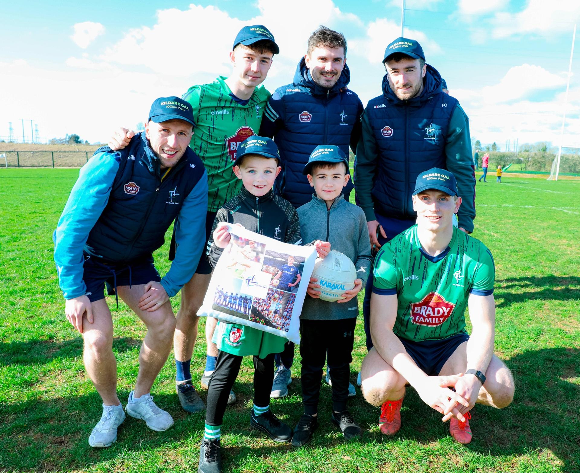 Oscar Cross and Kai Kidney with Members of Kildare GAA Senior Footballers