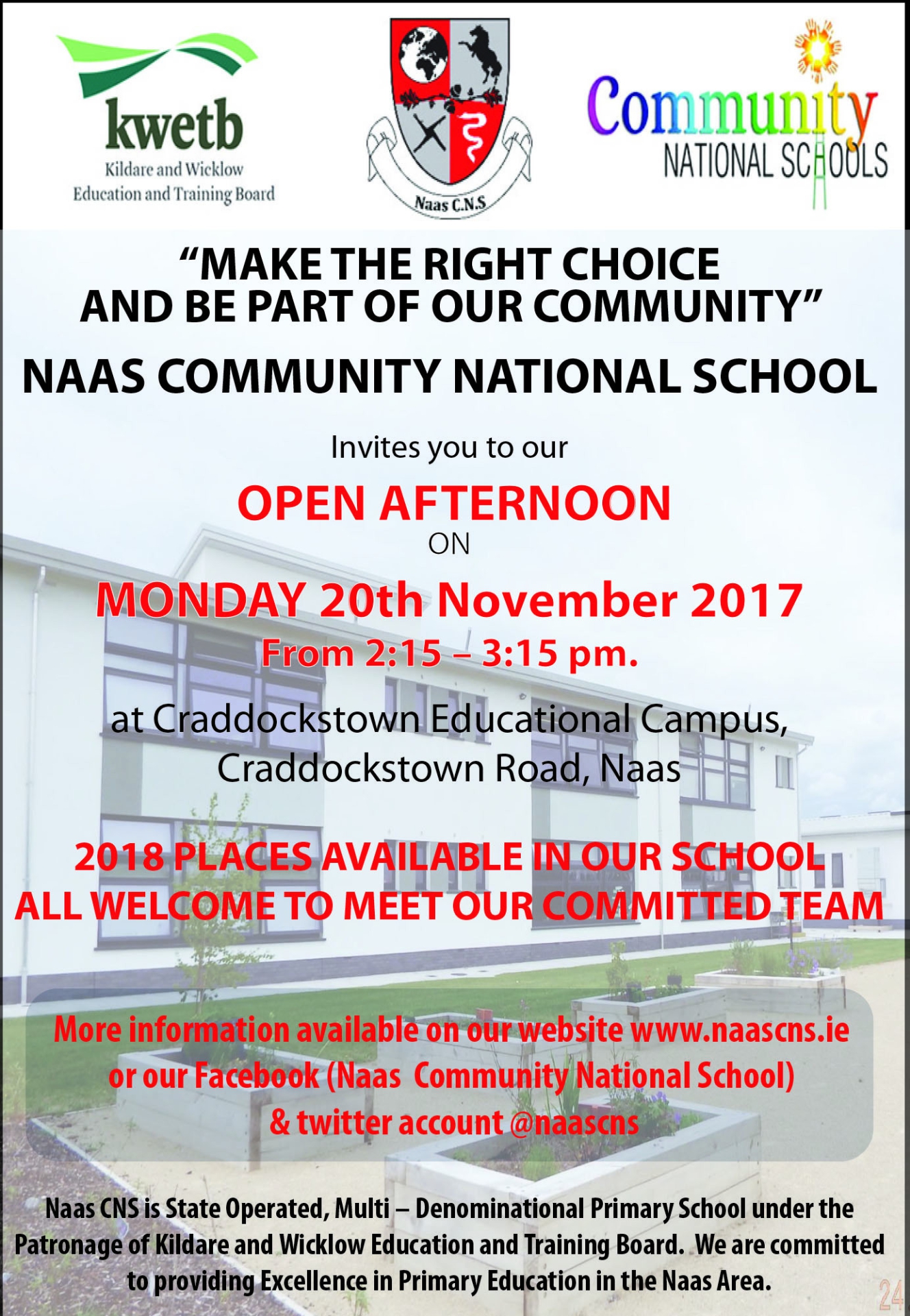 Naas Community National School is holding an open afternoon on Monday, November 20.