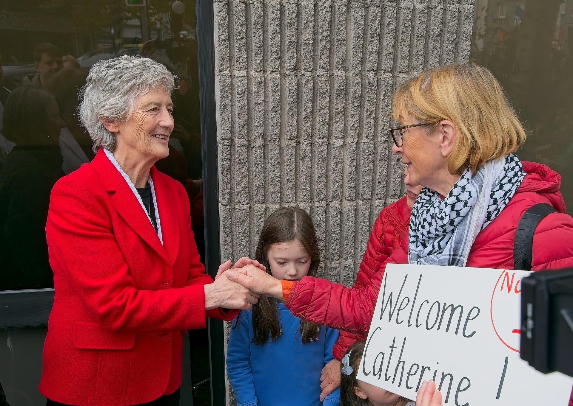 Presidential candidate Catherine Connolly is greeted by supporters on her visit to Naas on Tuesday, October 14 last