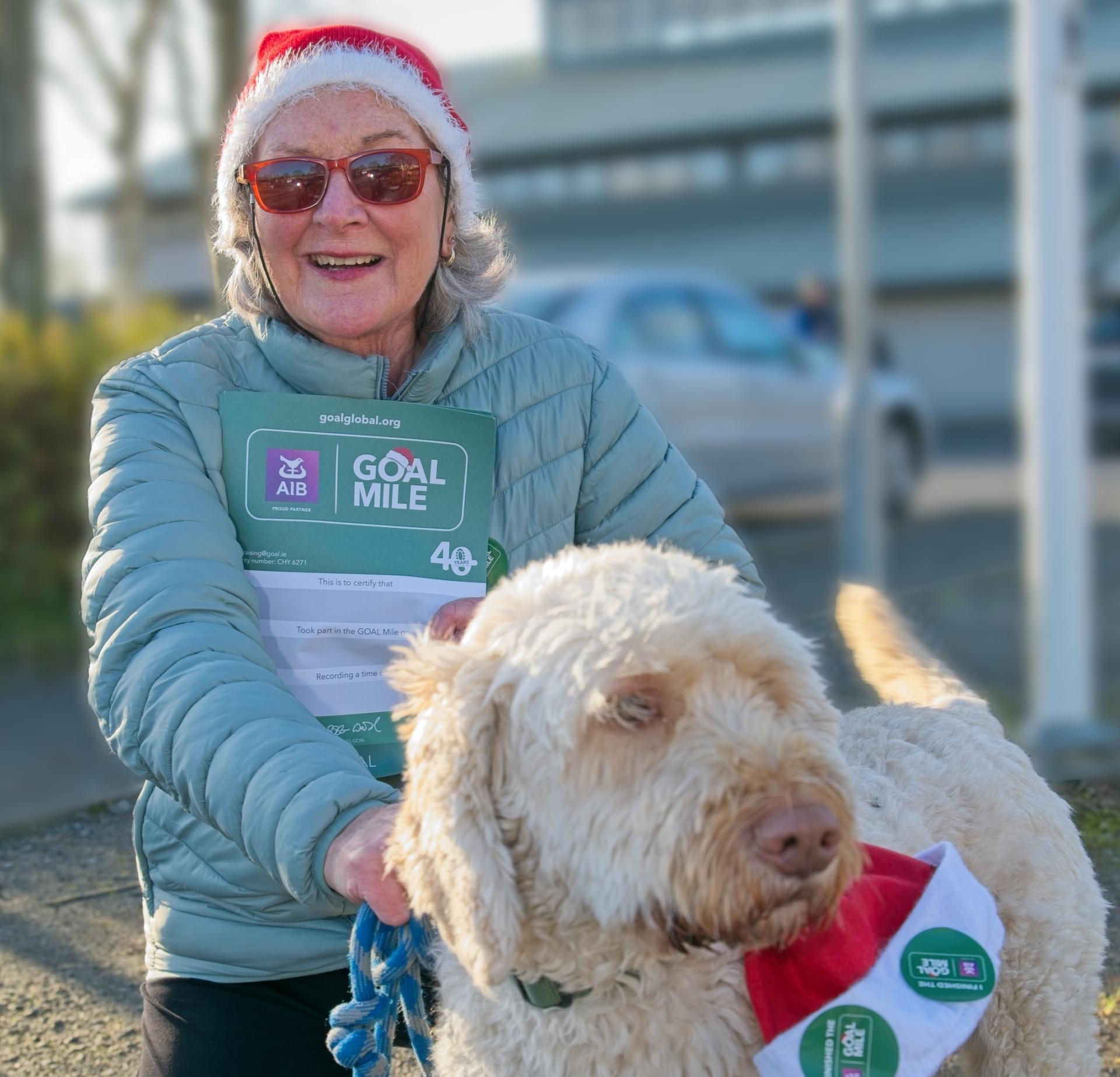 Joan Pigott and ‘Oscar’ did the GOAL Mile in Naas