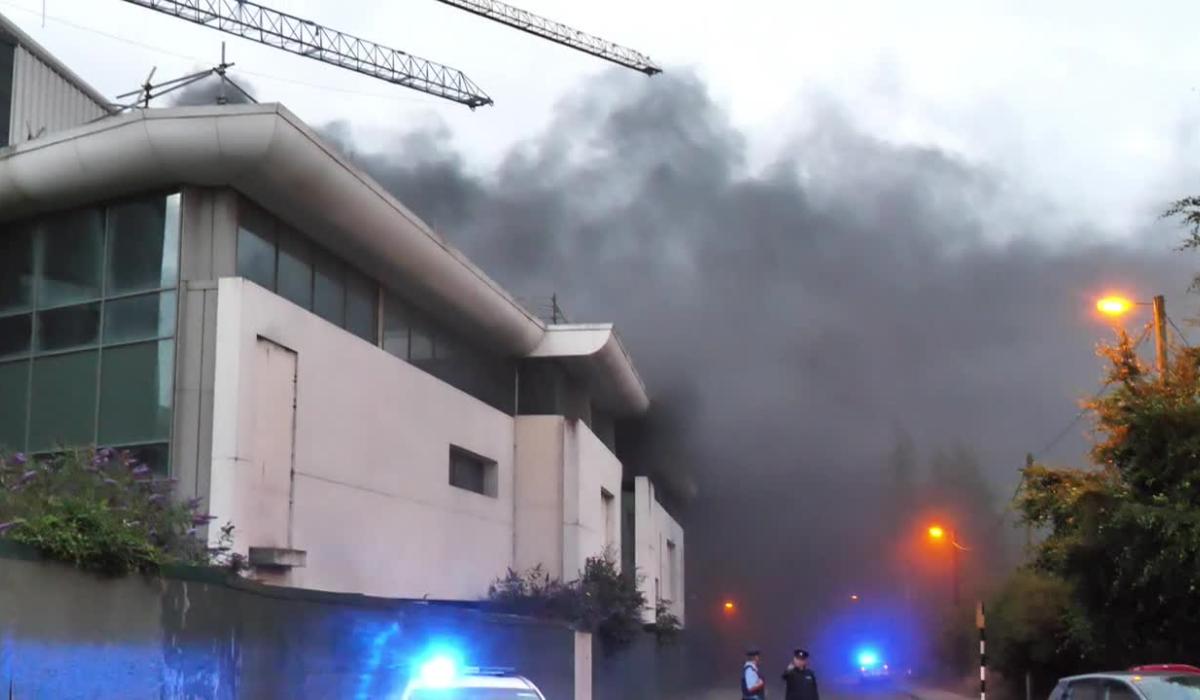 Thick, black smoke engulfed Naas town on Thursday evening as a blaze broke out in the town centre's unfinished shopping centre building.